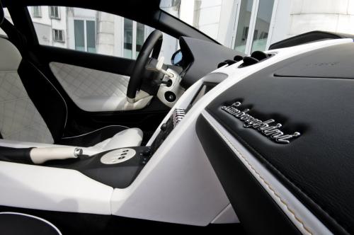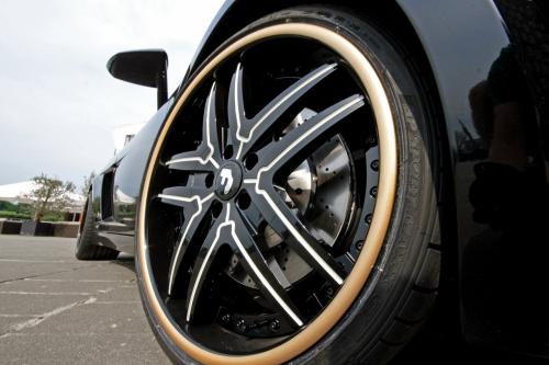More emphasis was placed on the car's looks. The black show car looks to have been thoroughly polished, with a white and gold stripe that is reflected in the wheels and the interior. The car's cabin features black and white leather elements, with gold stitching, and a quilted pattern in the seat and door inserts. Lacquered three-piece rims measure 8.5x20" in the front, and 11.5x20 inches in the rear, and are wrapped in high performance tires. Tail lamps and window panes also received tinting. A remote controlled, three-step valve control was also fitted to the exhaust to adjust its note.