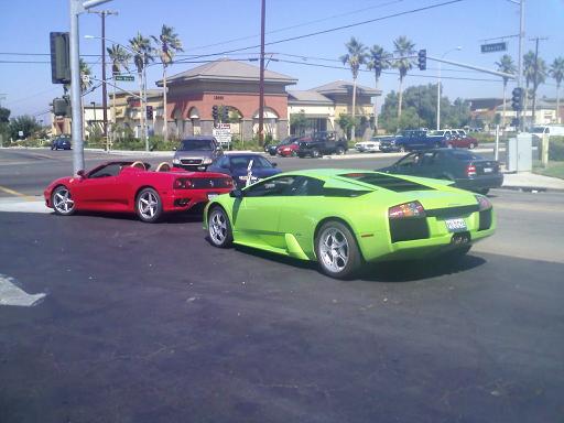 Green Murci and Red Ferrari