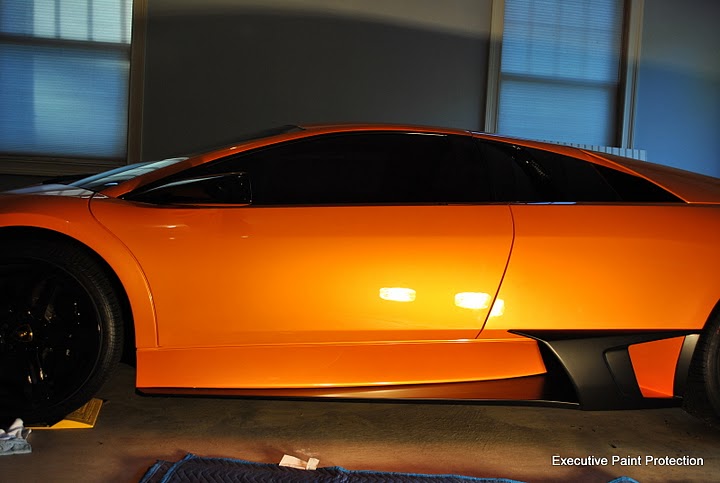 Here is a Murcielago that we did a matte black wrap on the lower part of the side skirts and air inlets. Here are some pictures.