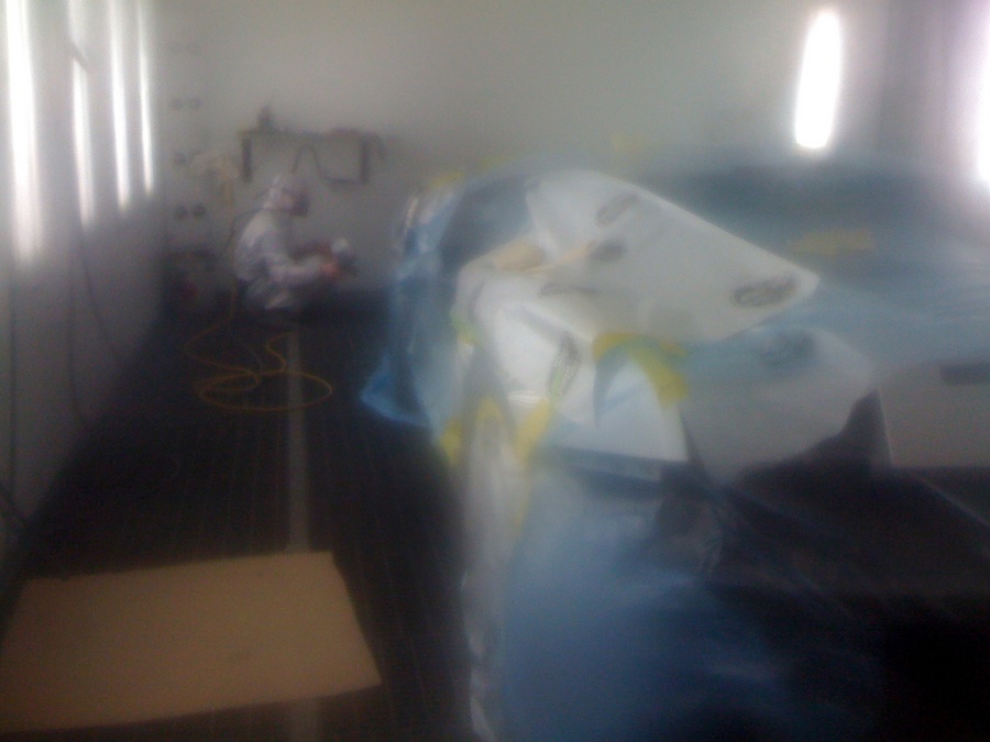 Stopped by the paint shop today. Couldn't see too much because the car was actually in the paint booth getting painted and the windows were pretty hazy with paint splatter. Much of the car was covered in the booth and many pieces weren't on the car, so I'm not actually sure what they were painting in there!