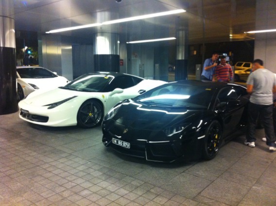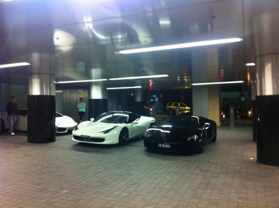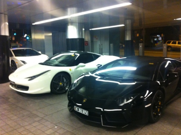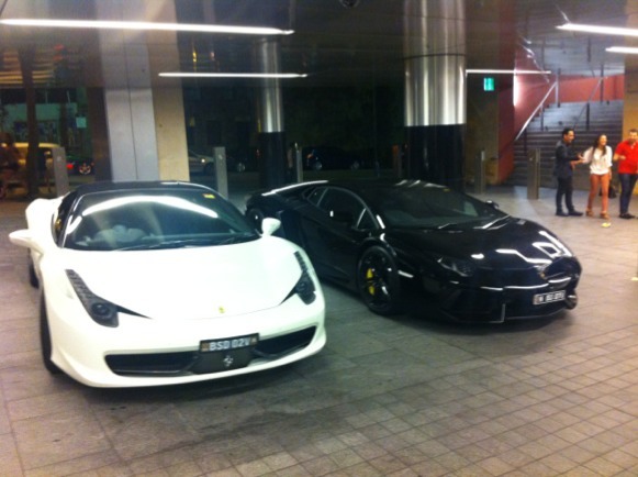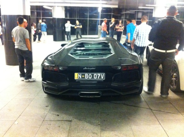 I think it's the first gloss black aventador in Australia. Along side a gallardo in the back and a F458