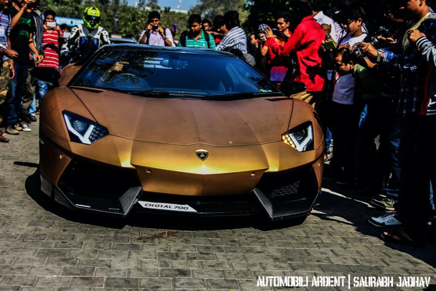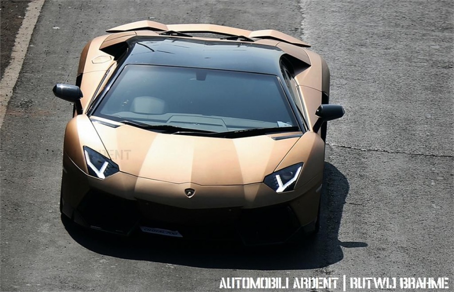 A bespoke Matte Prism Gold Lambo Aventador with Kreisseg exhausts and Novitec Torrado parts from India!