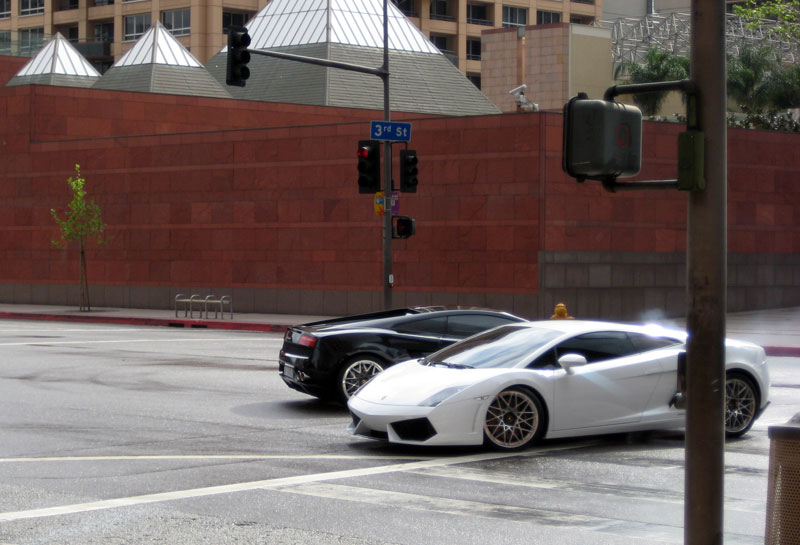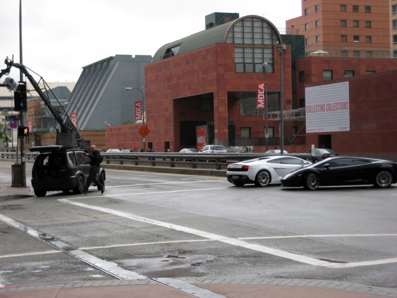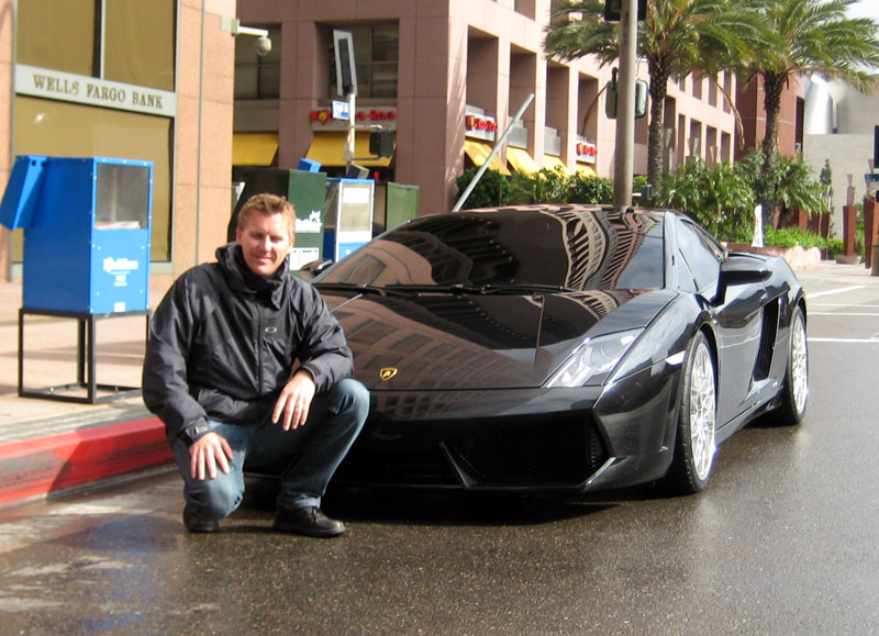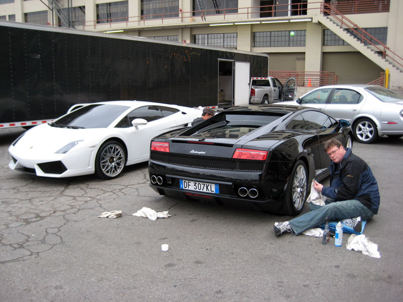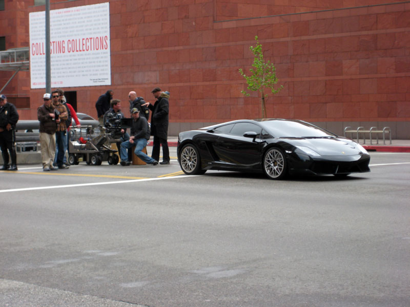 "I've been Drifting around in the 2009 Gallardo for 3 days now. Myself and Mario, a test driver for Lamborghini from Italy have been racing around LA with the camera chasing us like crazy. It's been so much fun and I love the car. I have never felt before that I wanted to steal a car till now. It is a commercial for Europe and car shows around the world.