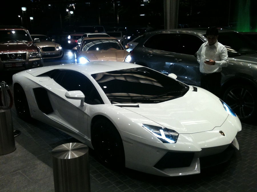 So there I was happily snapping away, when i hear the unmistakable howl of a Lambo V12. Turning around I see the Sheik's son turn up in the first customer delivered Aventador. Yum: