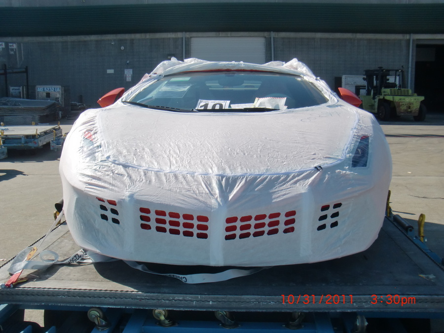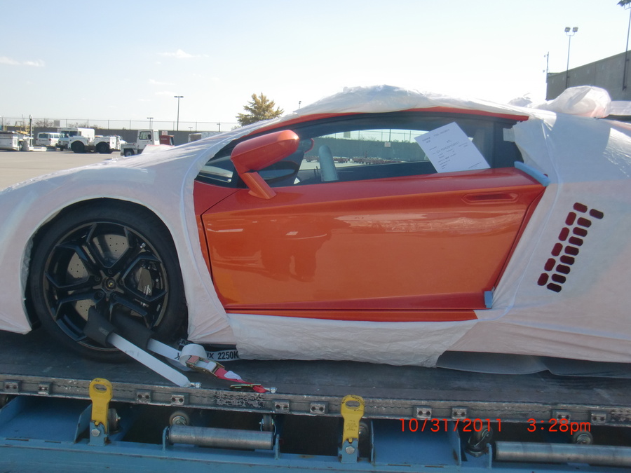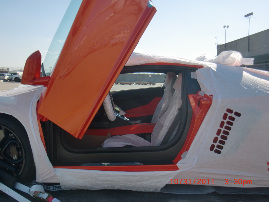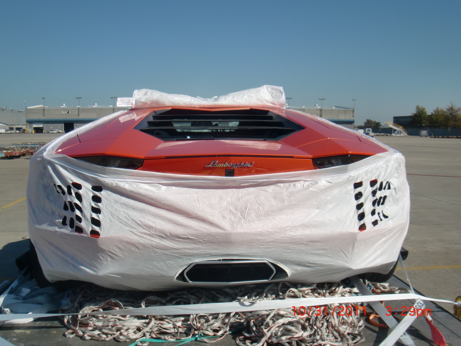 Here are a few teaser pics of my car at the cargo hold awaiting customs clearance. More pics to come in the next few days. This is the 3rd customer ordered Aventador delivered...