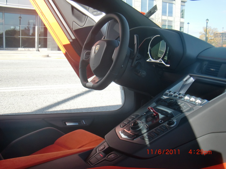 I took delivery of my Aventador on Sunday. It got here on 10/31 but took 4 days to clear customs at the airport. As always, pictures do not do the color or the car justice--it is just unreal in person. It goes without saying that the car is a blast to drive. Here are a few initial shots....