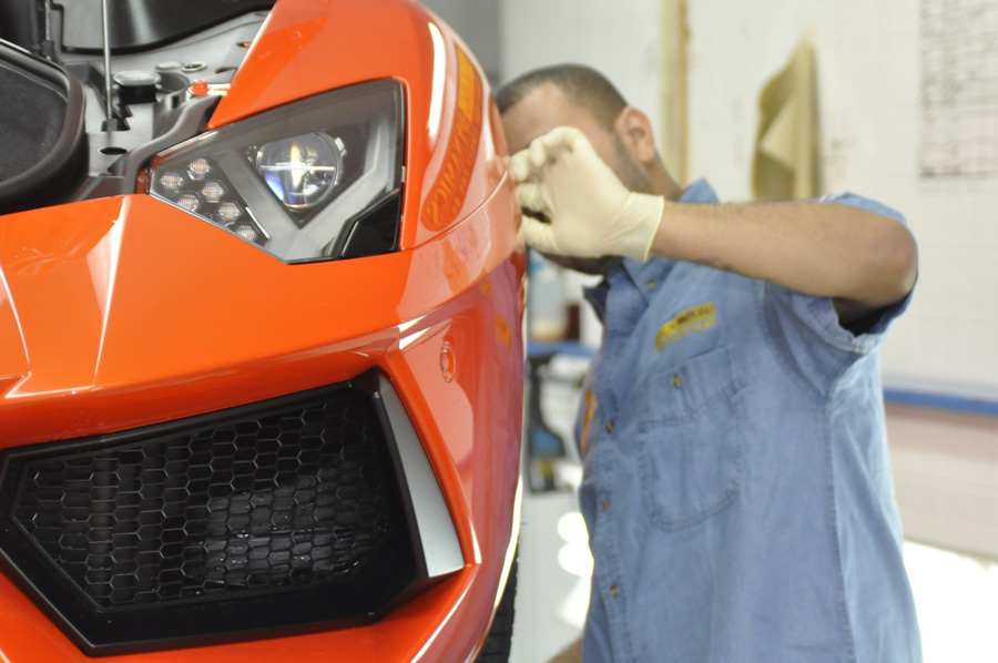 The first privately delivered Aventador for NY area arrived in NYC on a Wednesday afternoon, and on Friday morning by the request of its owner was dropped off at Detailing Dynamics to begin the process of a full 3M Paint Protection Film coverage, and a paint prep and correction to ensure every metallic sparkle in this beautiful color shines trough.