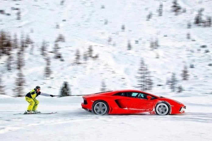 So you're skiing and there is a nice car in front of you with an amazing exhaust note! It can't get better!