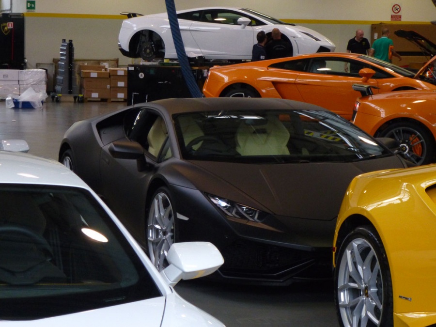 I couldn't make any photo of the green one but I did manage to film the red, orange, black and white cars just outside the factory gates. No photos/video allowed inside the factory (obviously). The Huracan is a sure winner for Lamborghini, very beautiful in all colors!