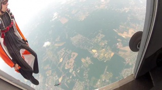 My slowest in my suit is about 38mph downward. That's probably not survivable. If I had a bigger suit I could slow down to the low 30s. Still, not going to live through that.
