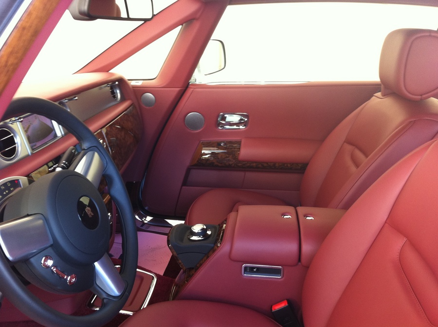 Interior: Full Consort Red leather including dashboard and headliner and carpets with Burr-Walnut Veneer.