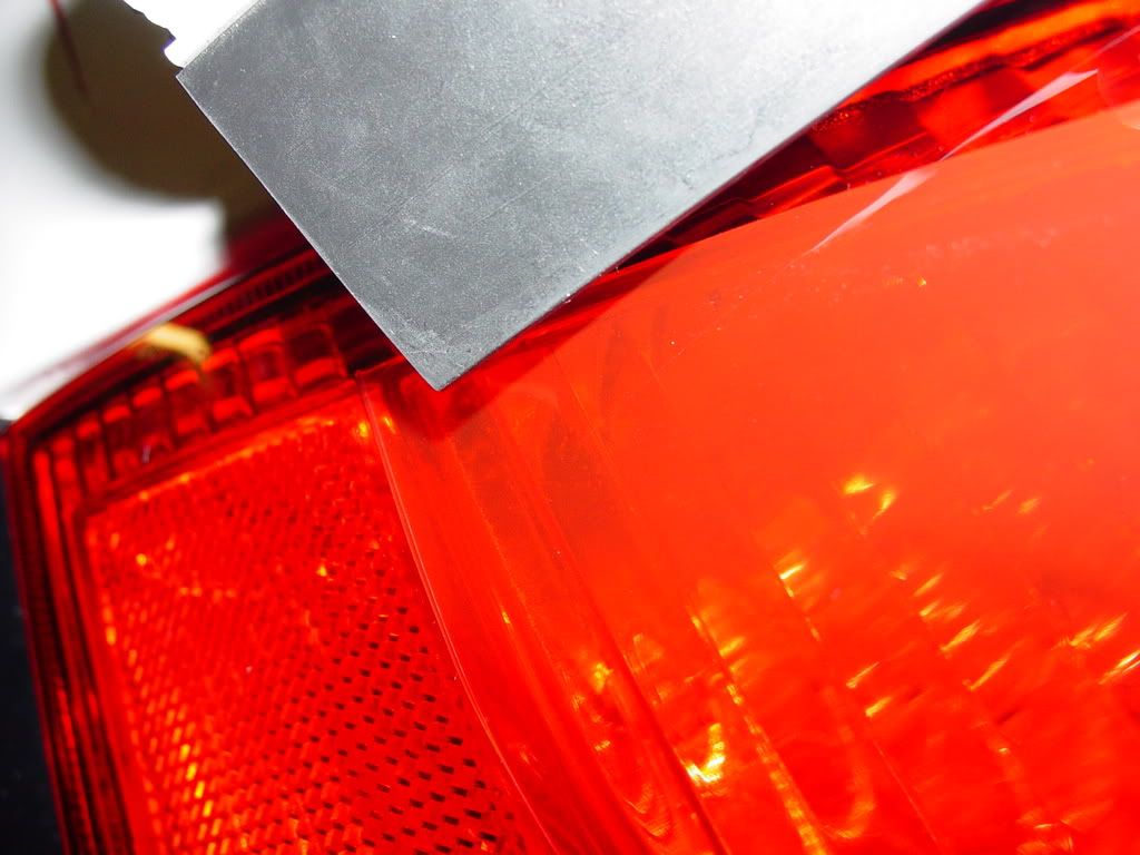 Clean the taillight with a solution of 50/50 water and 70% rubbing alcohol and 1 tablespoon of dish washing liquid.
