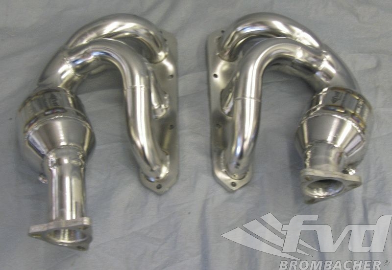 I just received my new custom headers and sport cats for my 986 Boxster S from M&M exhaust in Germany via FVD Brombacher. They feature propriety tubing diameters, precise laser cut flanges, equal length primaries and a race style merge collector along with 200 cell tri-metal HJS cats. The quality, fit and finish is unequalled.