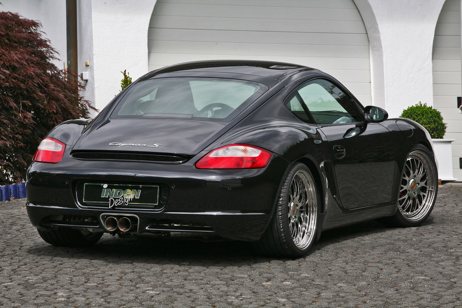 While we’re still waiting for Porsche to officially reveal the more powerful Cayman S Sport, the German tuning firm “Inden Design” presented a new sports kit for the Cayman S model. Thanks to a new exhaust system, the Cayman S 3.4-liter boxer engine’s output is raised by 19Hp delivering a total of 314 Hp. According to Inden Design, the flaps of the exhaust systems are operated together with a control unit. A small microprocessor, which is freely programmable, is embedded in this system. The sports kit also includes new H&R height adjustable coil overs and a set of bespoke 19-inch alloy wheels wrapped in 235/35 R19 rubber on the front and 305/25 R19 at the rear.