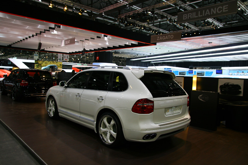 TechArt has announced plans to introduce a new tuning package for the recently launched Porsche Cayenne Diesel at the Geneva Motor Show next month. Unlike the company's Cayenne Turbo S based Magnum, the tuning package for the diesel Cayenne doesn't offer anything in terms of added horsepower. Dubbed Aerokit I, the new styling package consists of a variety of TechArt parts which help to give the Cayenne Diesel a more aggressive and sporting appearance. The biggest changes include the addition of a new front spoiler, aerodynamic side sills, a discrete roof spoiler, a new rear apron which features an integrated diffuser, and double oval exhaust pipes. The styling package also features some minor interior touches such as a new sports steering wheel and aluminum pedals.