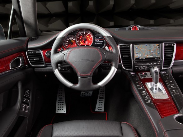 speedART presents the PS9 – based on the new Porsche Panamera. Power kits just for Turbo engine features include: Power kits with 520, 550, 600 and 650 hp up to 890 Nm consits of bigger turbo chargers and intercoolers (just 600 + 650 hp), sport exhaust with sound switch, sport catalysts, sport air filter and ECU update. The 650 hp car accelerates in 3.5 seconds from 0 – 62 mph and the top speed is over 200 mph.