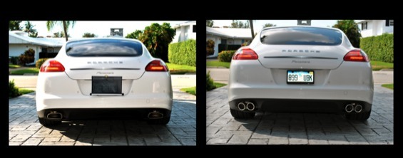 Thanks much to the helpfulness of Suncoast Porsche who assisted me in ordering OEM Panamera S quad style exhaust tips for my V6. I wasn't a fan of the boxy style stock tips so I installed the Panamera S quad tips. Have a peak...