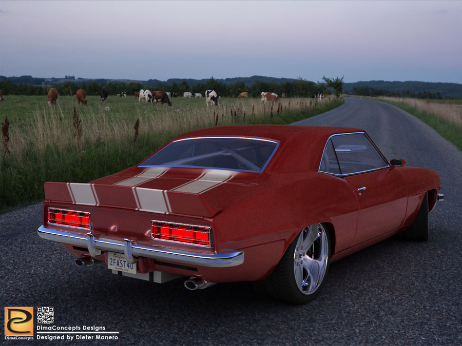 I recently finished rendering my version of how I'd like to see a 1968 Camaro. I'd created it in 3D studio max. Sadly I do not own a Camaro but still like to see what you guys might think.