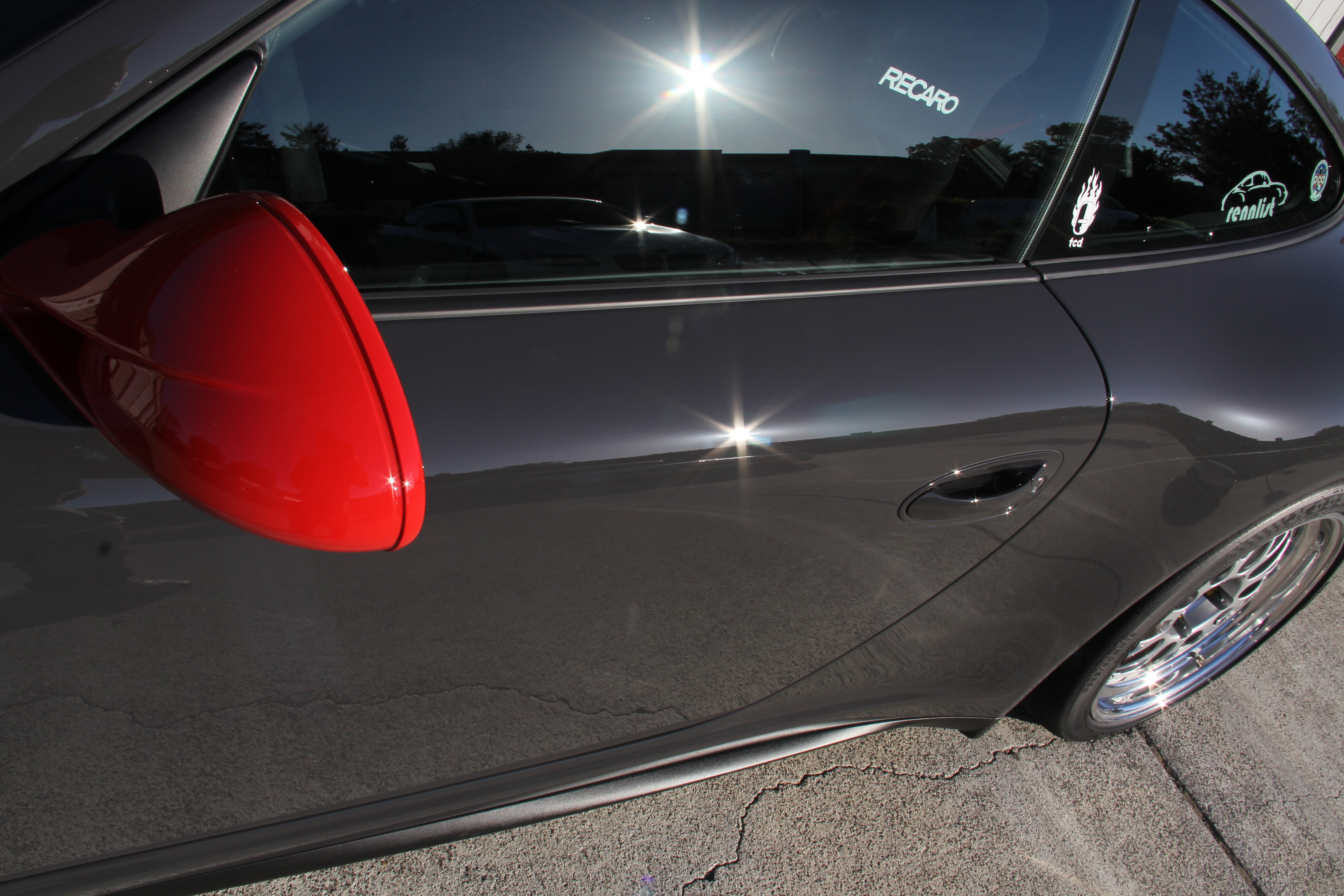 I usually source Emily @ Sharkwerks(Elf girl...) to clean the glass in Porsches with cages as I am NOT fitting back there, Daniel "Cowboy'd up" and did his best.