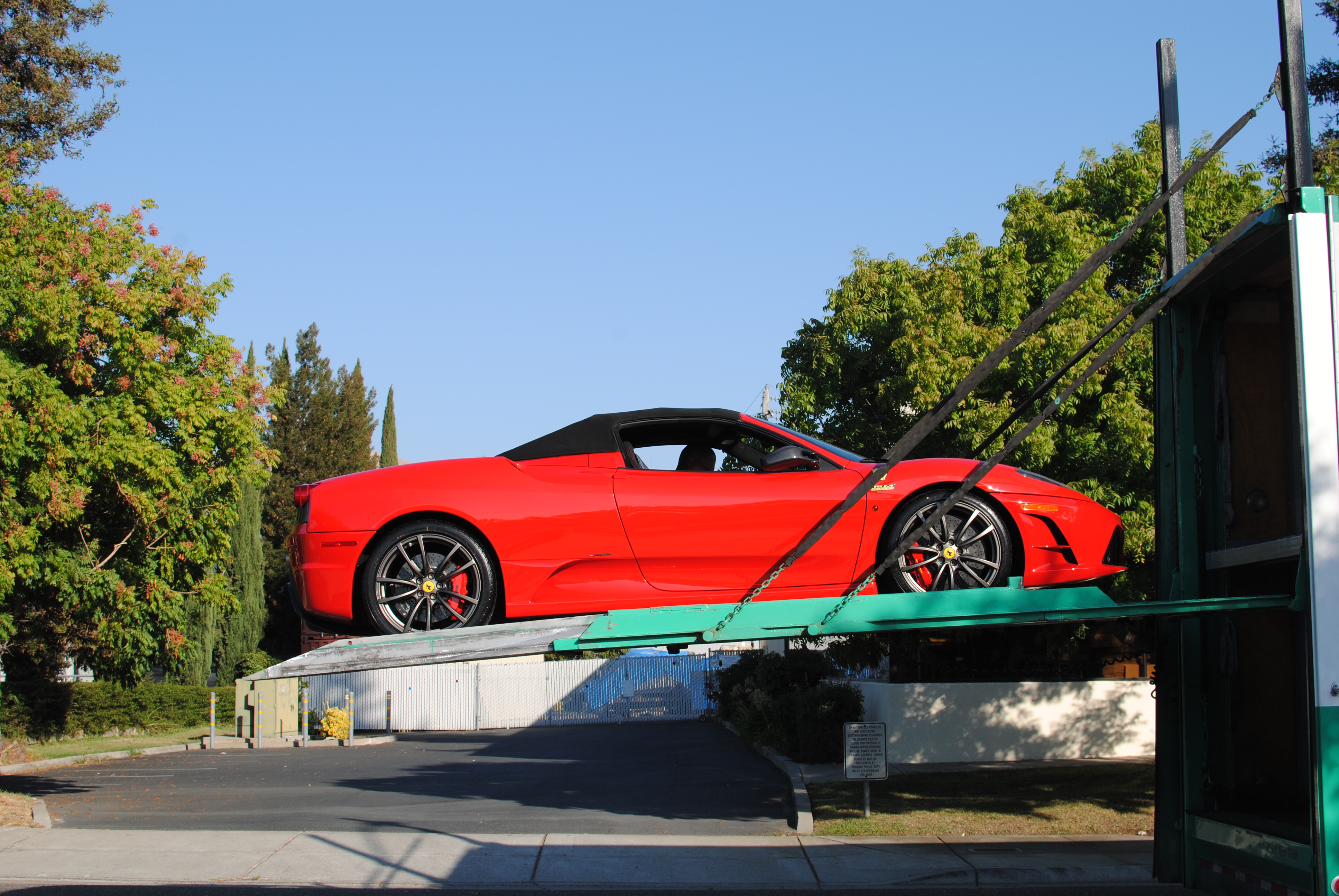 The transport driver contacted me and I directed him to a spot on the street behind my shop to safely unload the car.
