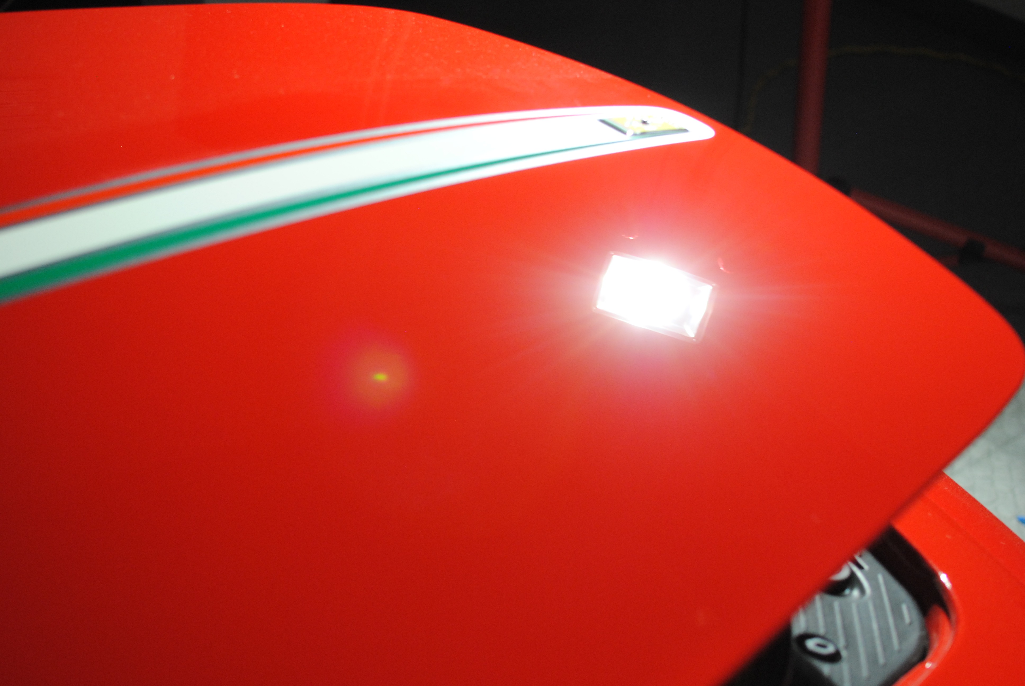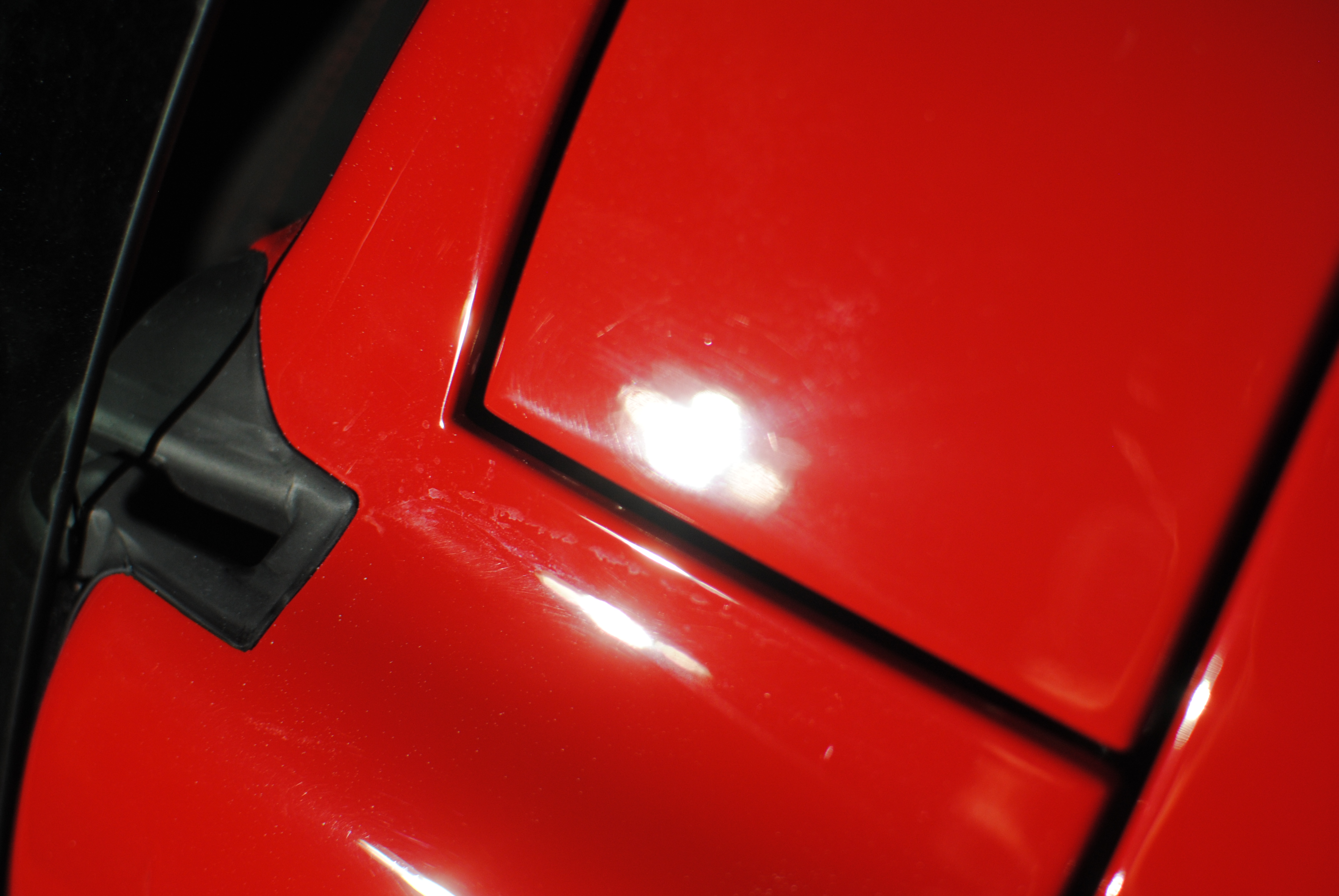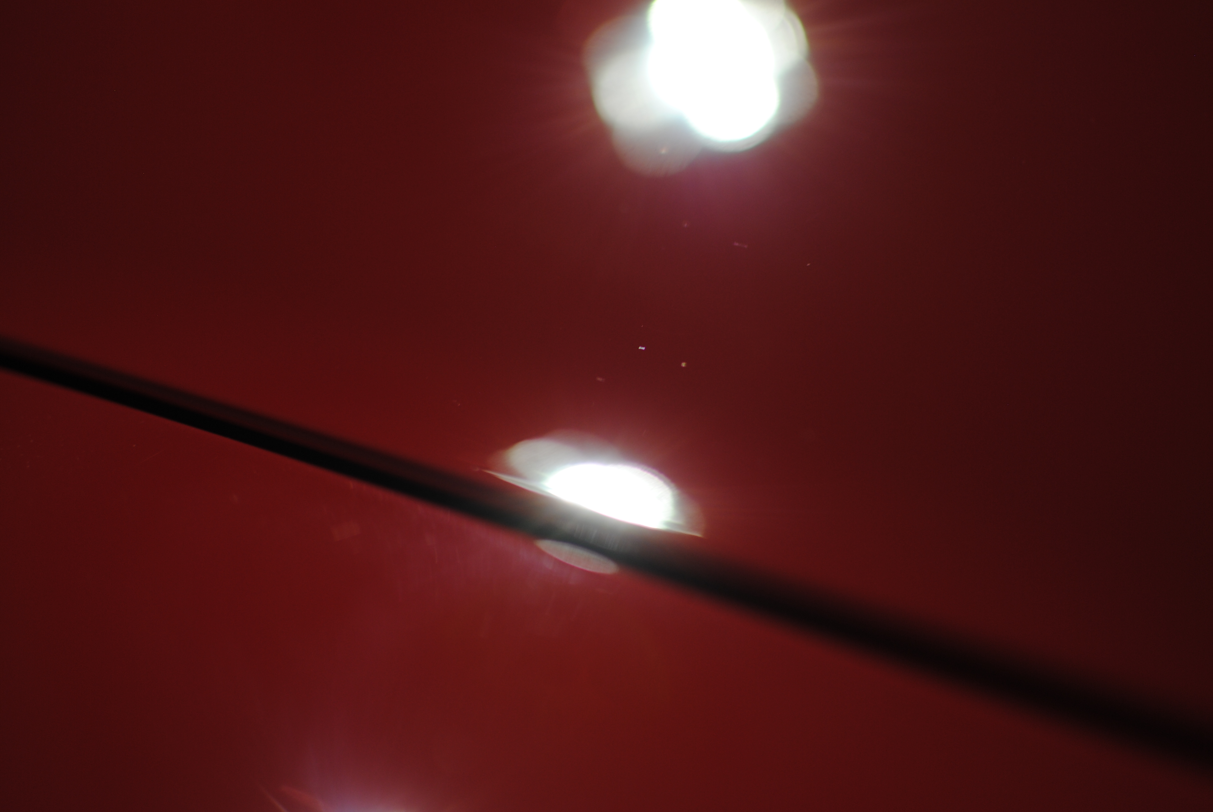 In the sun the machine holograms were evident, under more harsh lighting though the deeper defects could be seen. Cluster of sanding scratches.