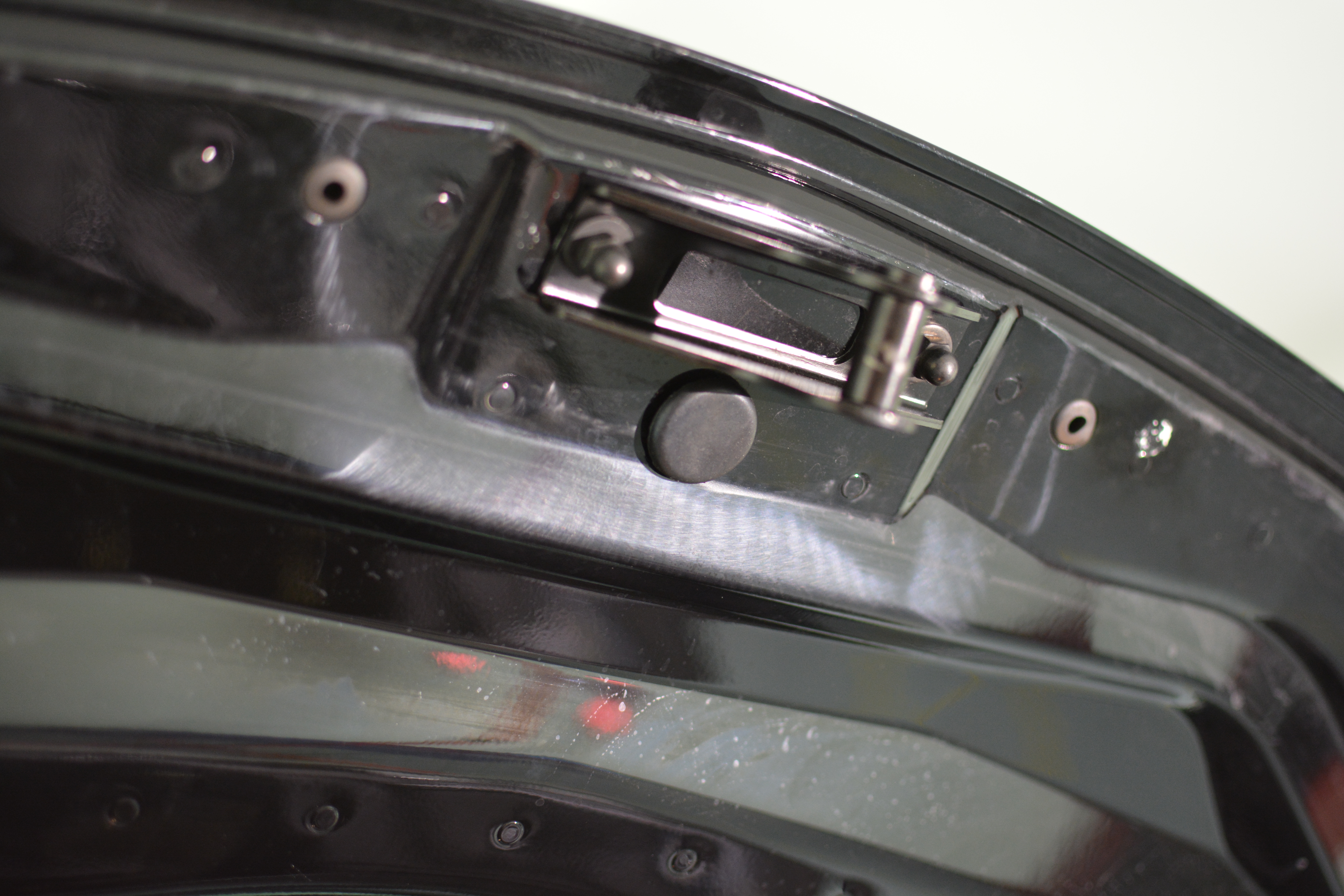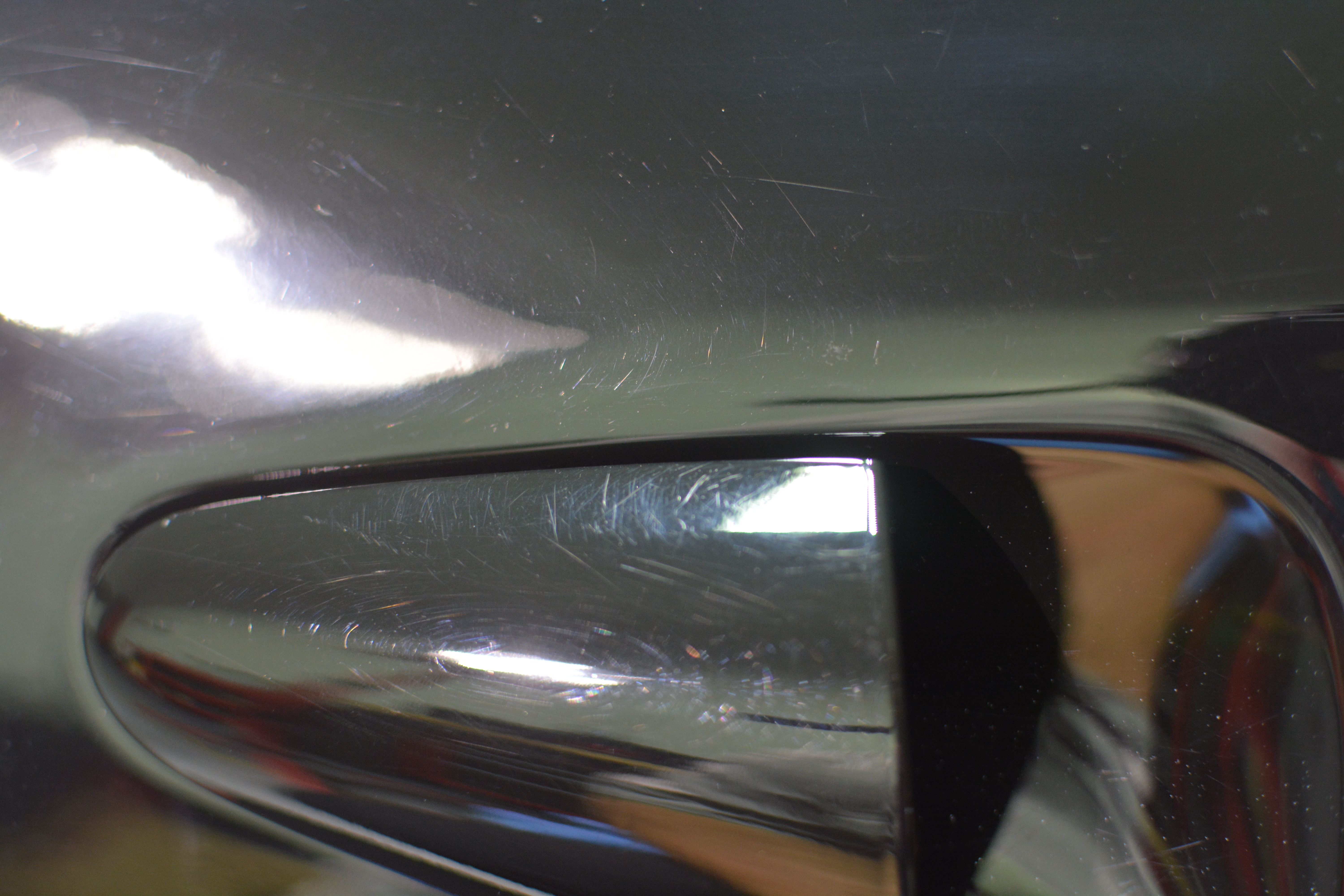 Sanding scratches on the underside of the engine decklid.