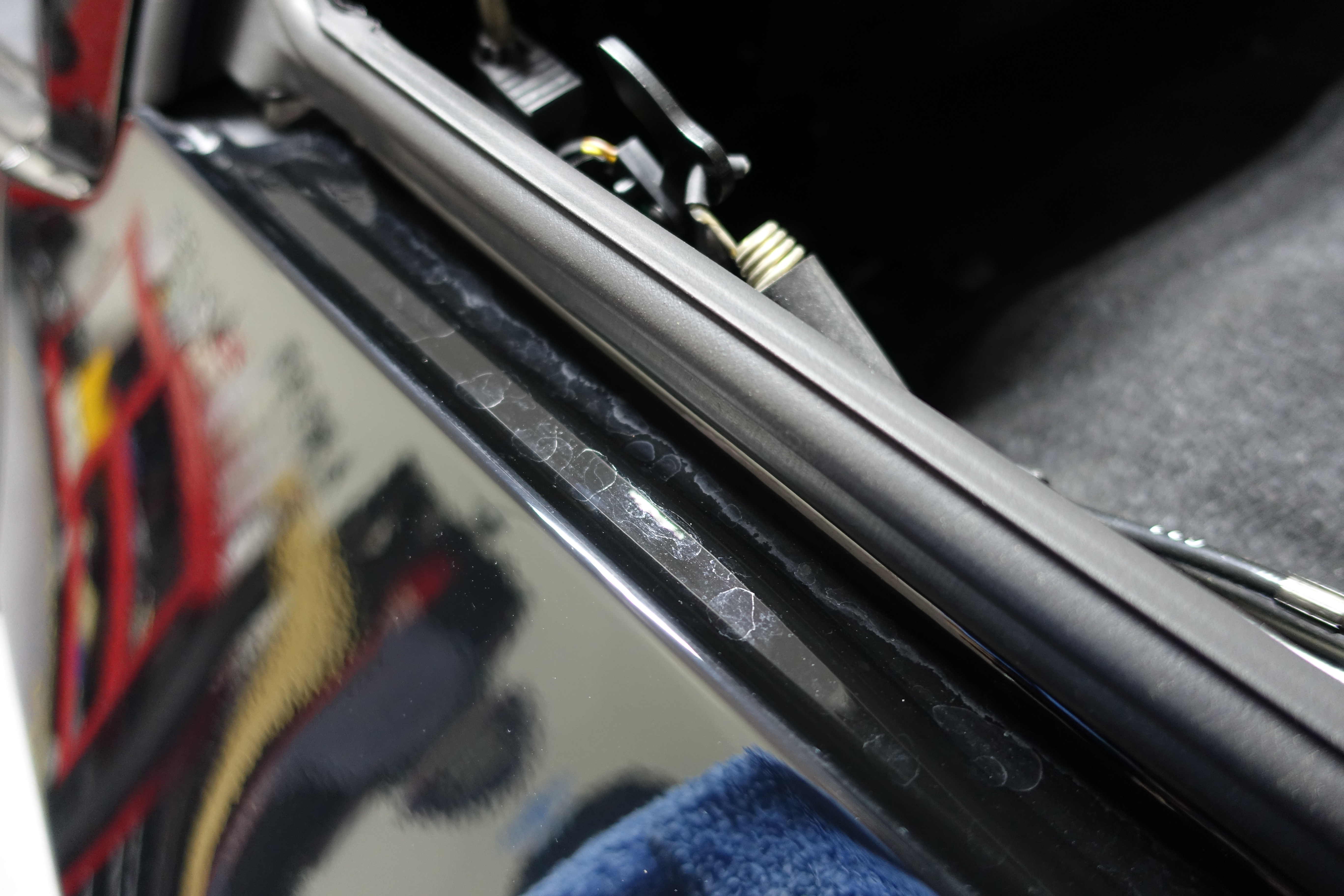 Deep scuff on the lower edge of the A pillar.