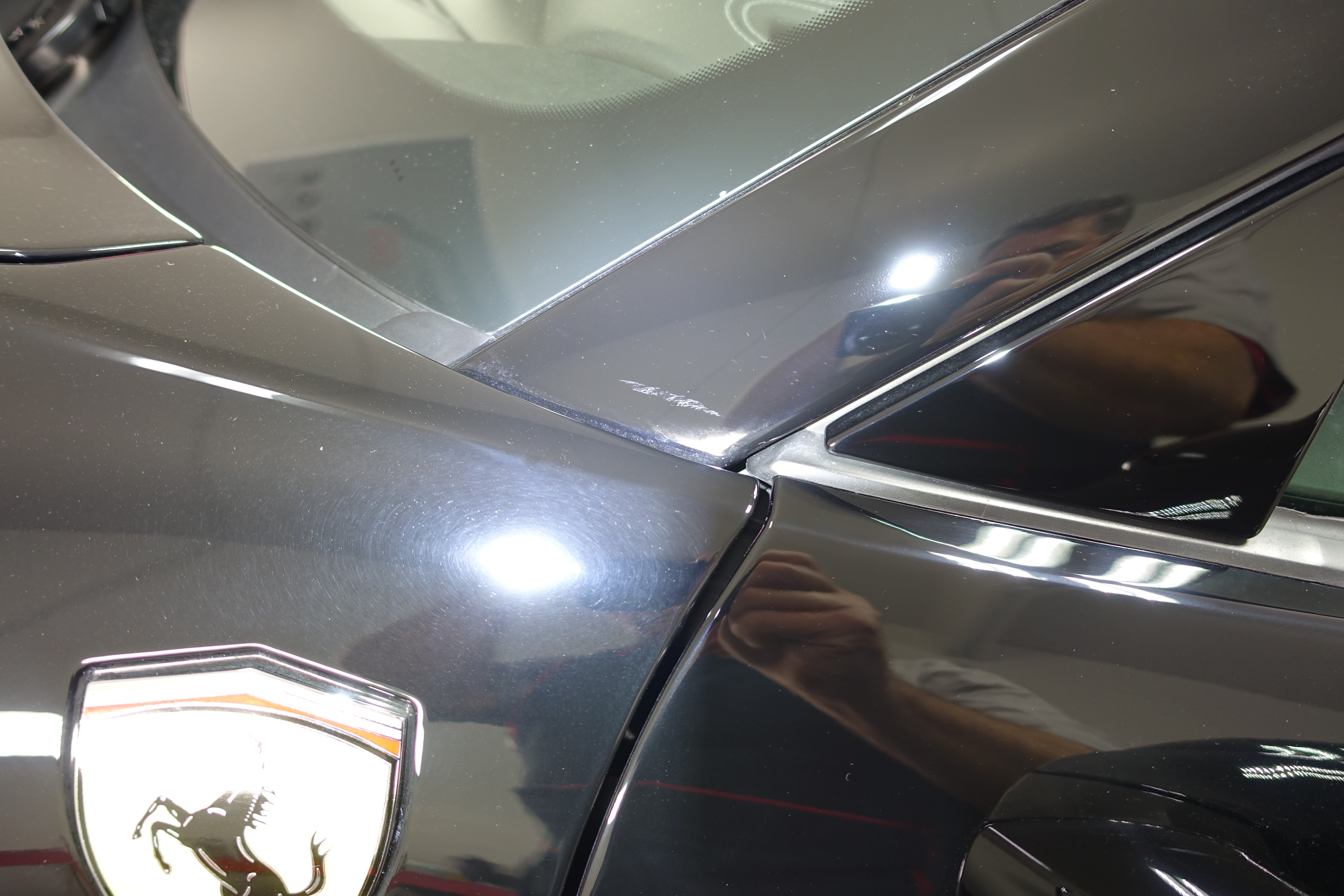 2014 Ferrari 458 Spider with the usual issues, factory sanding scratches everywhere and heavy water spot etching.