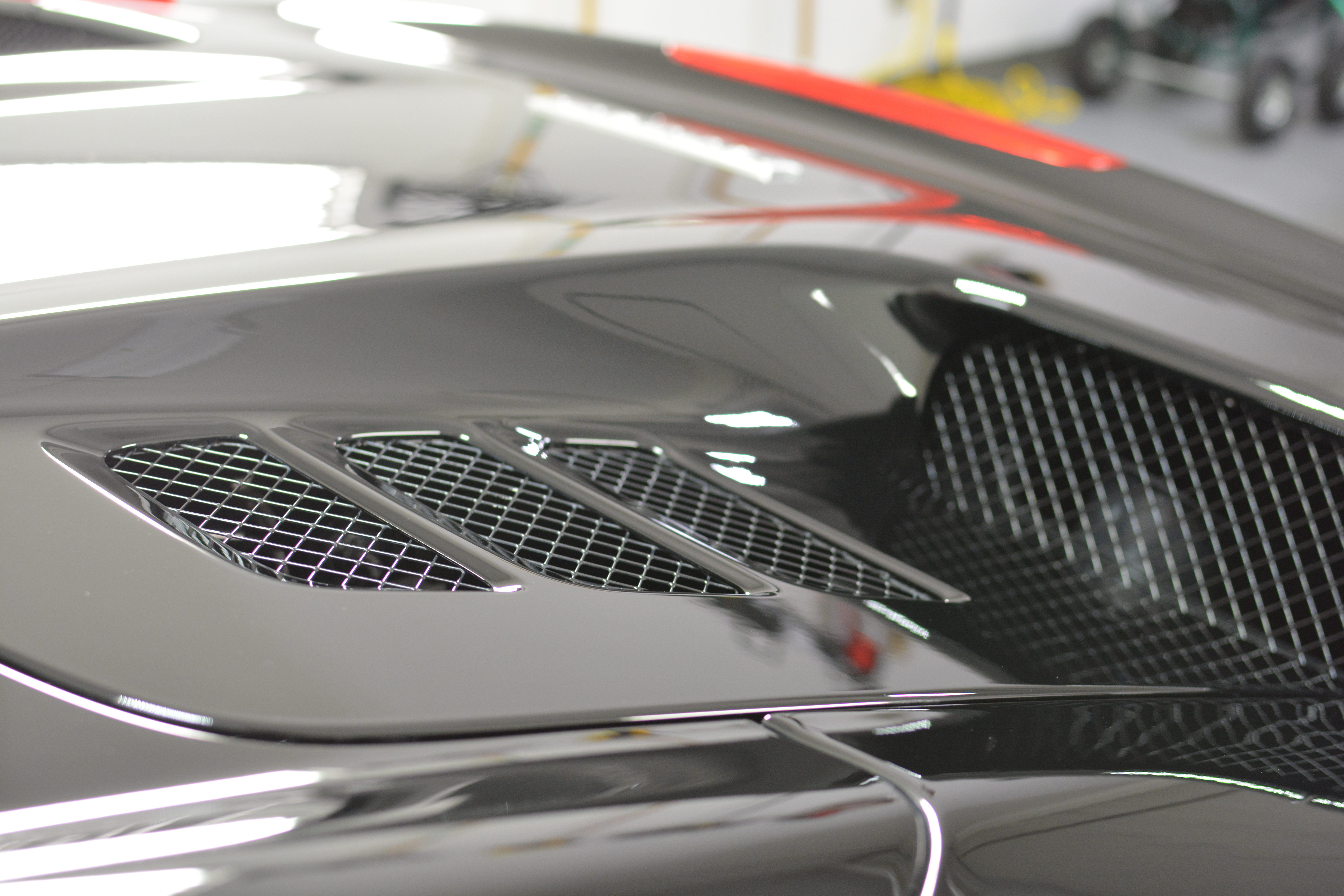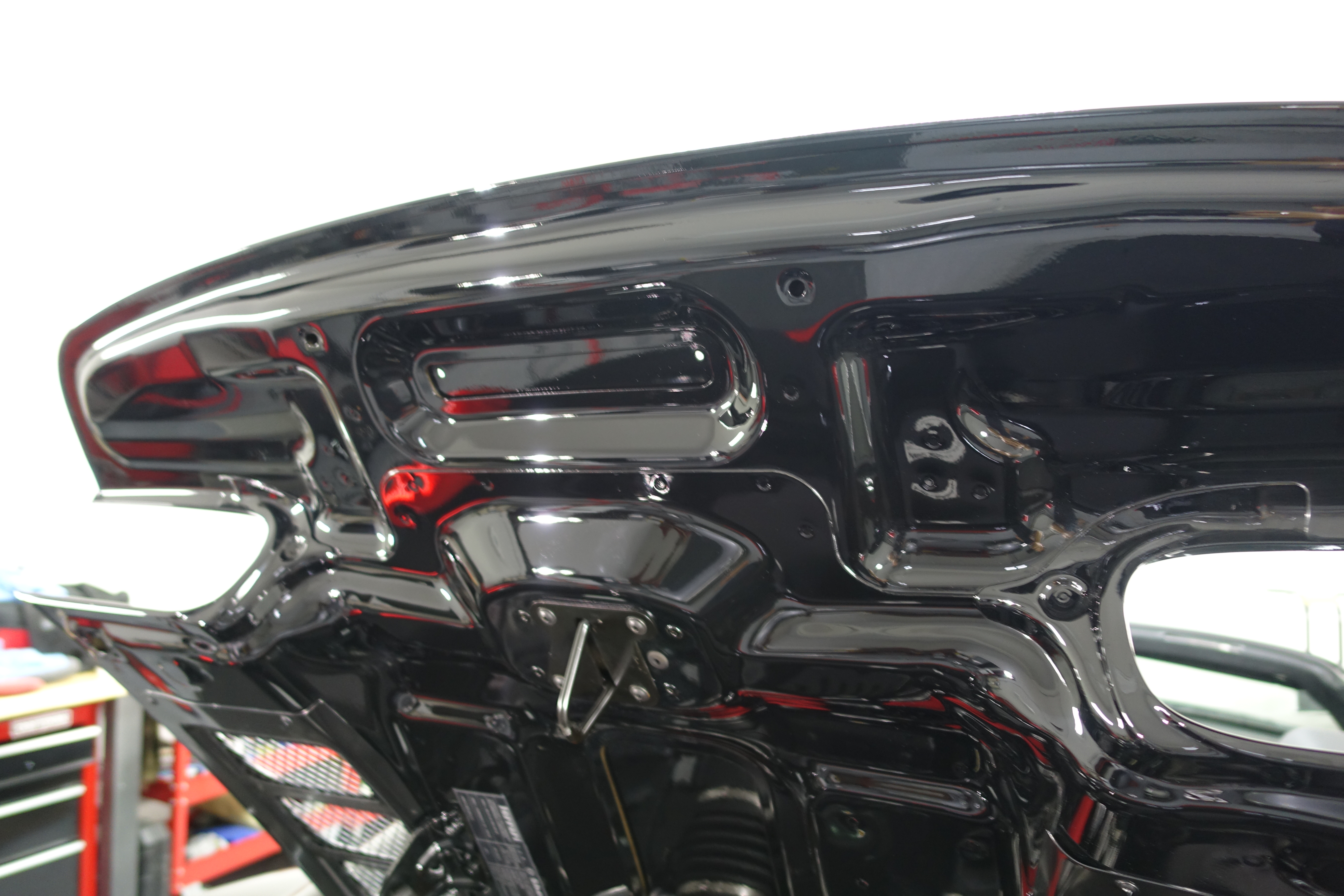 Underside of engine decklid with the sanding scratches removed and fine polished.