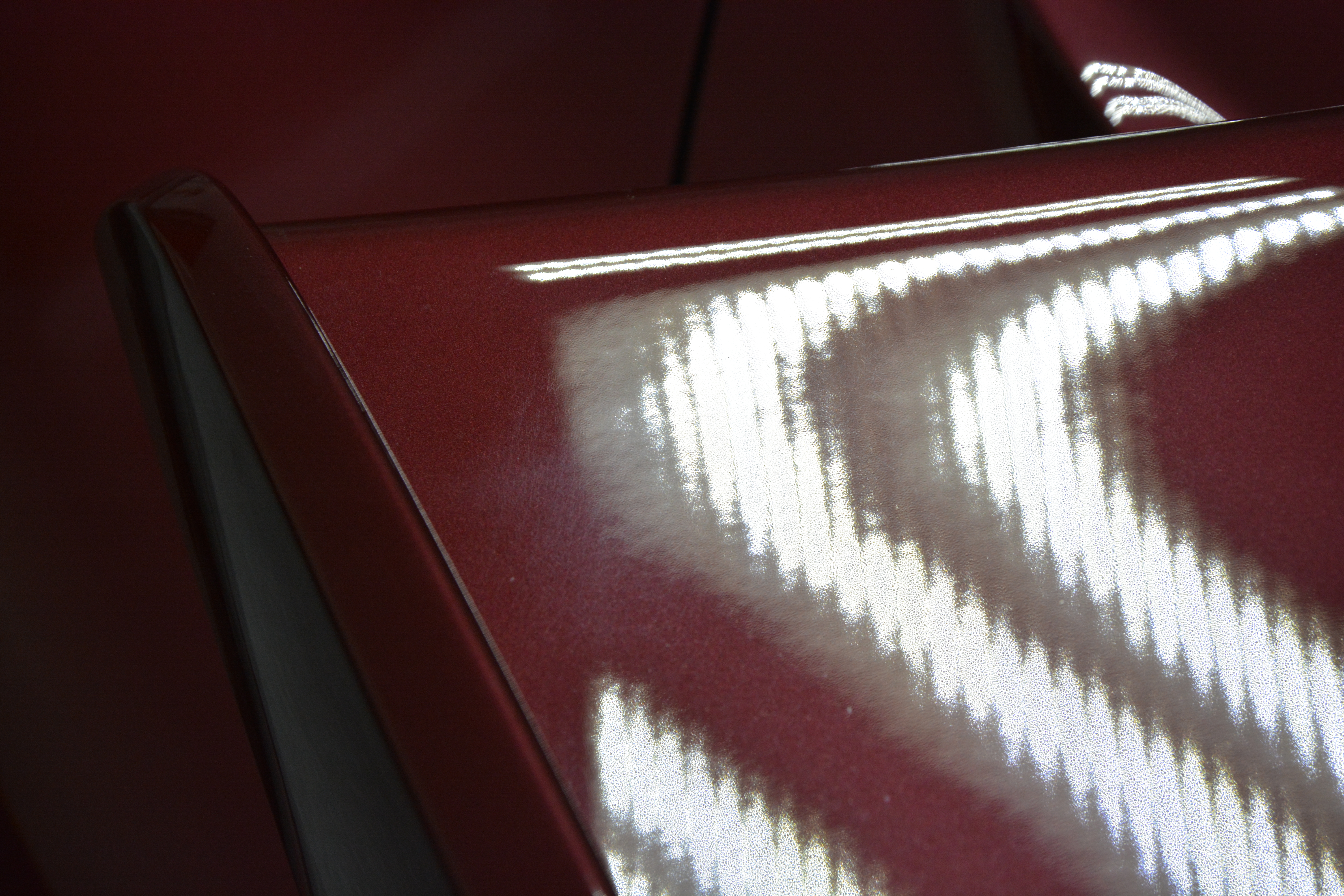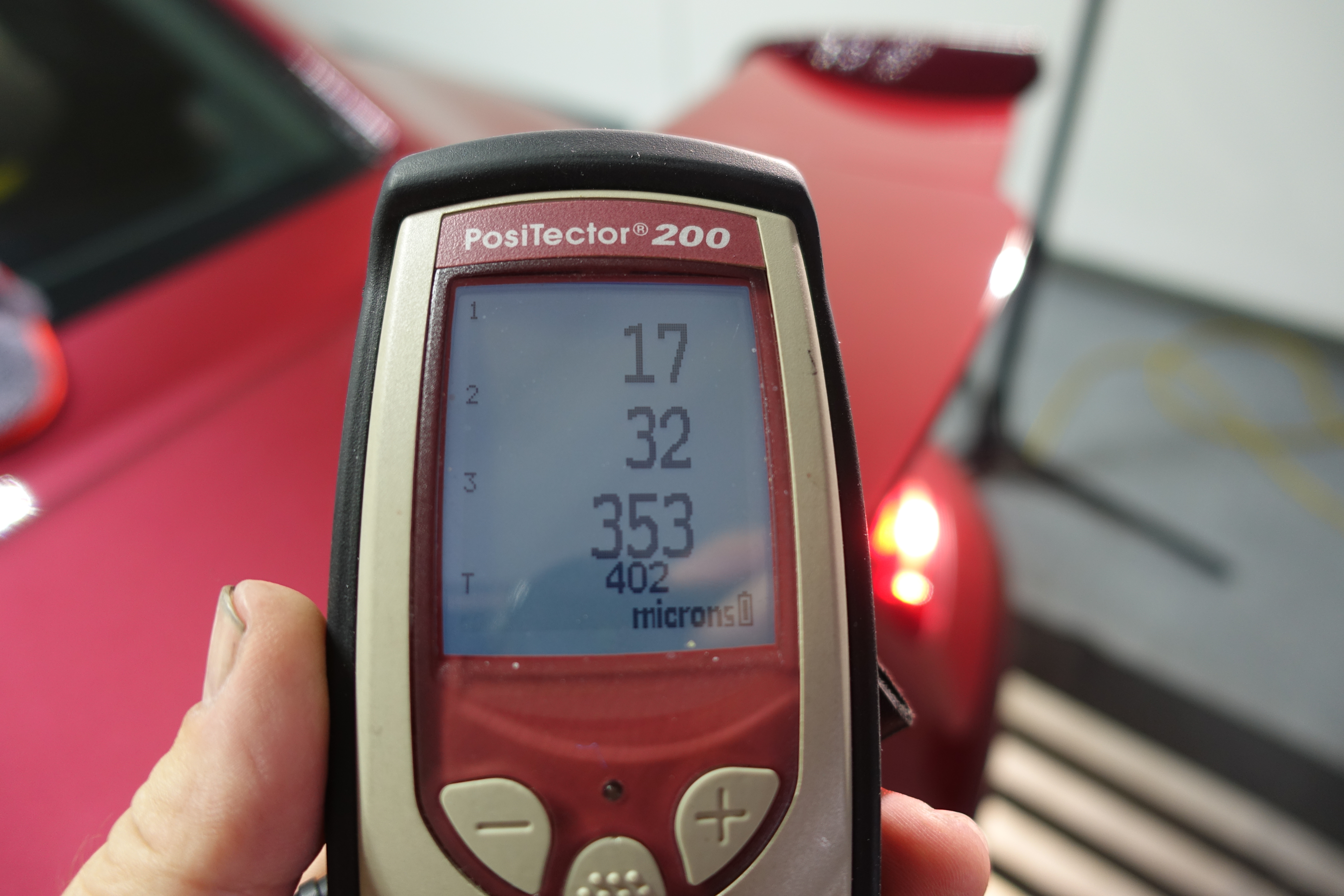 After the wash/decon steps were carried out it was time to tackle the sanding defects present on the wing and front/rear bumpers. Porsche GT cars are now coming with defects like I see on Ferrari and Aston Martin. Total film build is thick but the top reading is concerning............ care would need to be taken here.