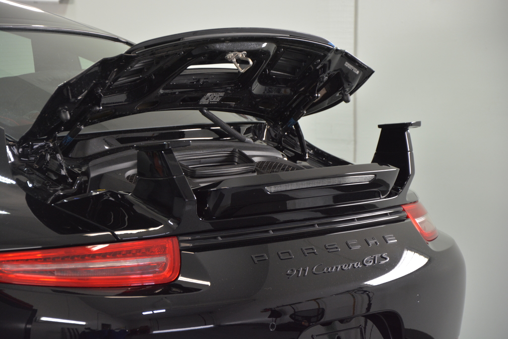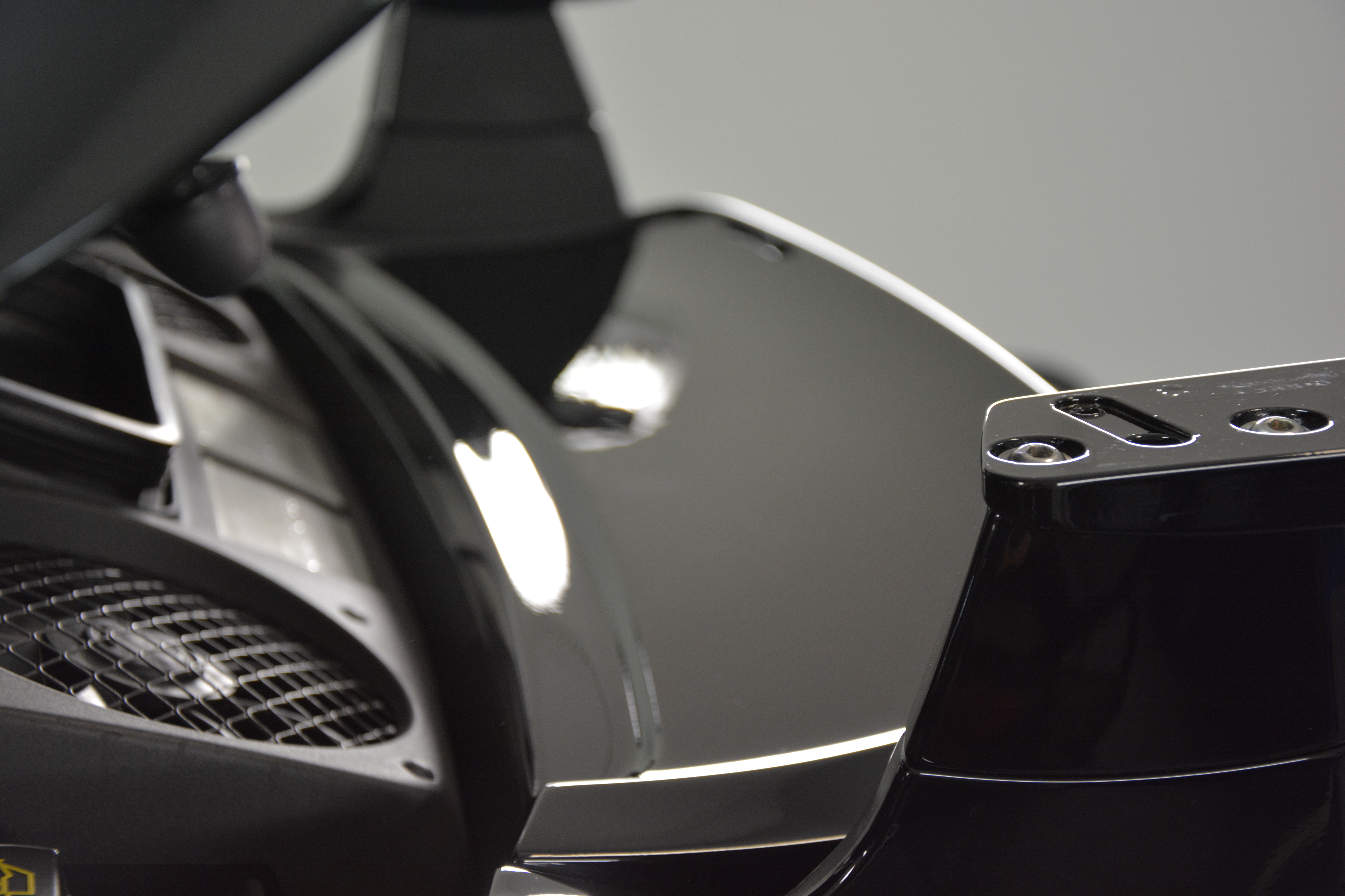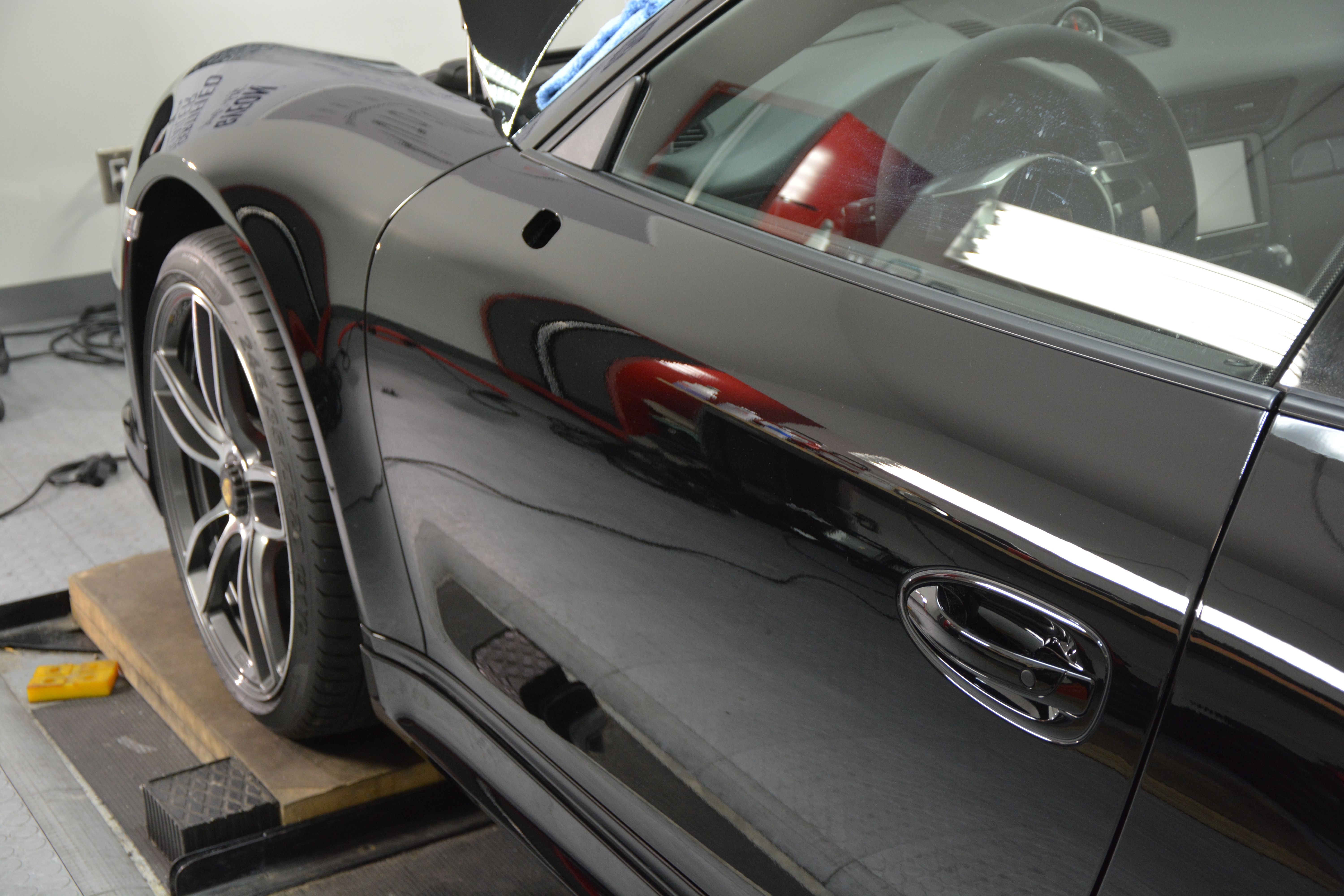 Freshly painted Tech Art wing removed for sand scratch removal on the underside of the wing
