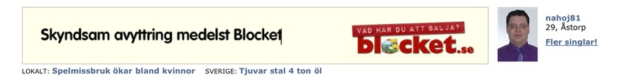 Var inne på blocket en stund igår, blir alltid lika förvånad, (precis som du Jox, tidigare påpekat här) när jag ser dessa fantastiska bilder på folk som söker en partner - ibland blir man inte förvånad över att de är singlar faktiskt