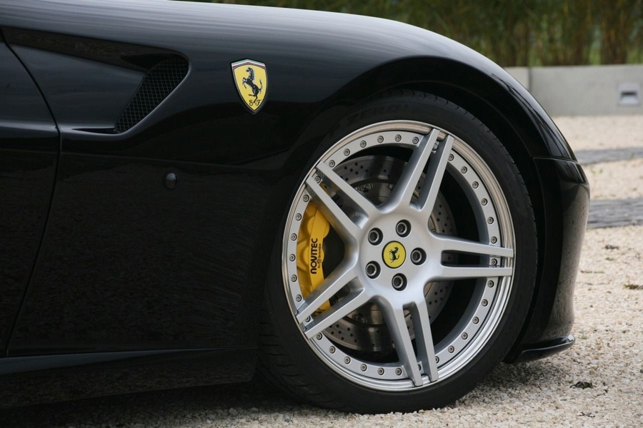 Hey Mike S. Here are some pictures of our Novitec NF3 wheels on our twin-supercharged 599 GTB. We are the only company that can offer a 21" rear wheel for the 599 with a load-rated Pirelli tire. It's a 20x9.0" front and 21x12.5" rear with 255/20/ZR20 and massive 355/25/ZR21 P Zeros. The standard colors are silver and black with a polished lip. But they can be ordered in any color combination for the face, lip and rivets. Let me know what you think...
