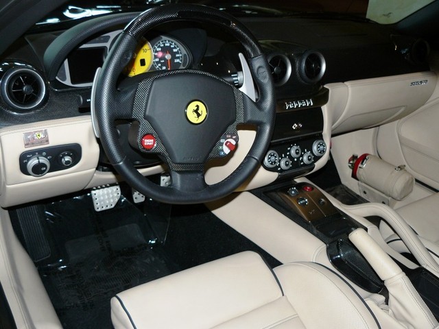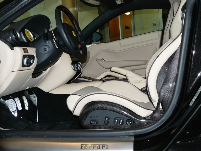 Pics as requested by MeanMachine. Nero Daytona is truly a gorgeous color, very nice in different lighting, natural or artificial. I hadn't seen it over Crema before and usually prefer beige or black interiors in Ferraris, but it works very well with Nero Daytona. The black contrast stitching and piping, mixed with the carbon accents, make this car just pop. I love it.