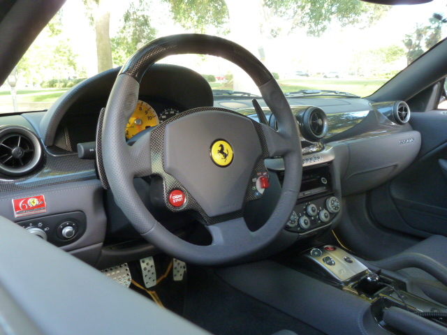 The interior is grey with carbon fiber.. As for the car, its pretty bad ass. The 458's transmission is def the better of the 2, but that doesnt mean the 599's is bad.. Id liken it to being close to a Lp560.. The sound of the 599 is to die for.. I know Alex spent countless hours tuning the sound to get it wheres it at.. Car is very comfortable all around.. quite abit different from feel from the 458..