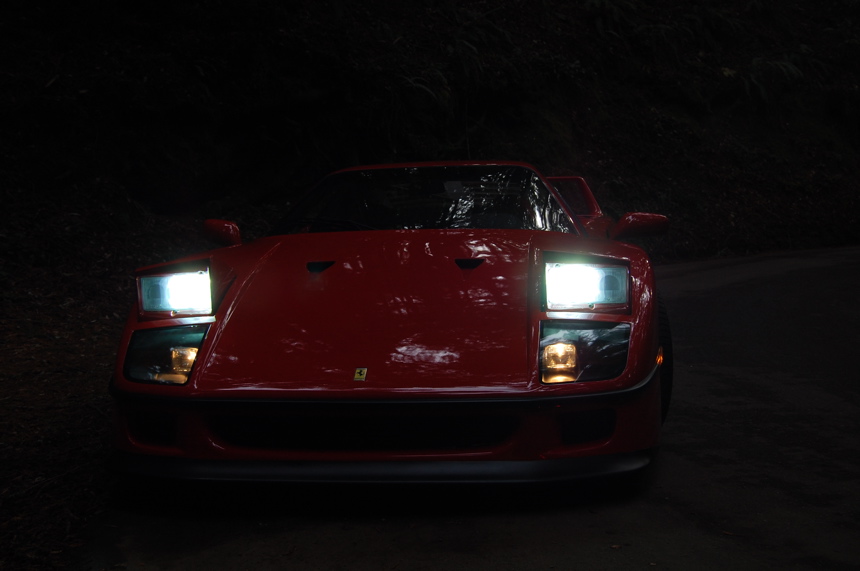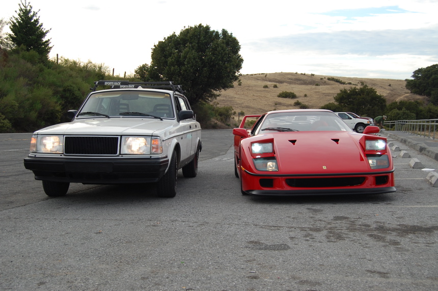 Just did my first and only mod to the F40. I really want to keep it box stock, but putting HID's on it for night drives just made sense and it's easy enough to revert back to stock. So posting up a couple of pics including one next to this Volvo that made me remember that we used to call those big headlights on those things "dual Sony's". The Volvo is not that big a car, but I was surprised how it dwarfed the F-car side by side. The Xenons work great, btw.