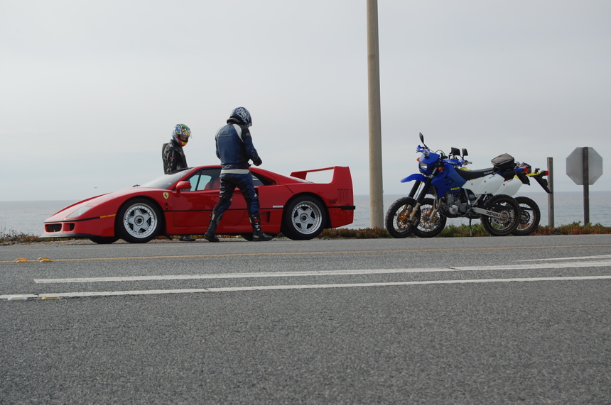 Tossed in a shot of a couple of motorcyclists I met at the beach that day and a decent "cavallino rampante" sculpture for the Tifosi amongst us.