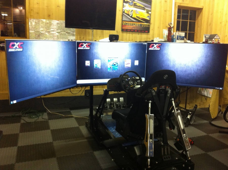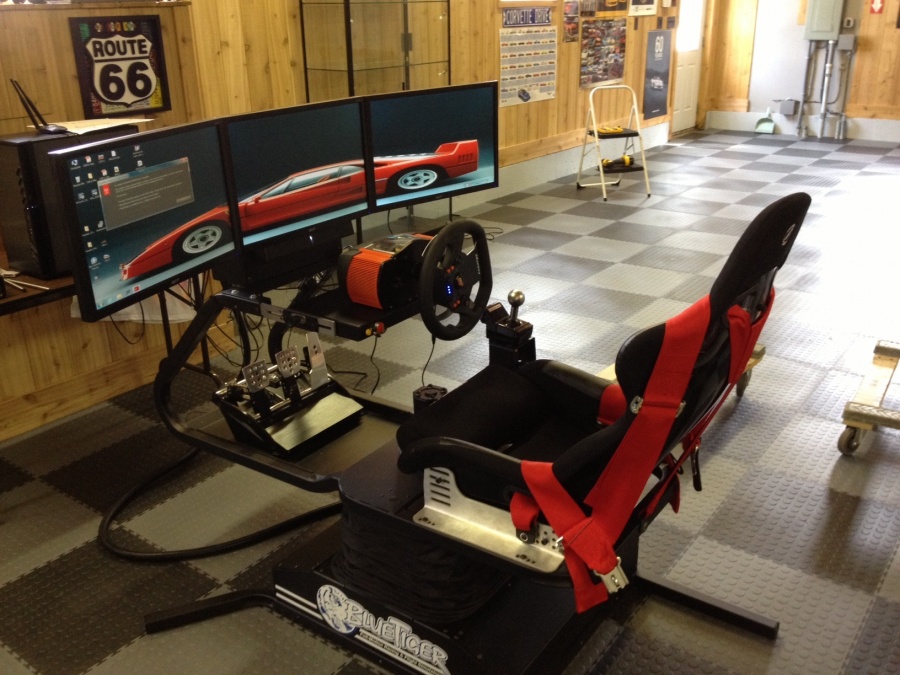 There are also Ultra Realistic SIMS like the one below made by CXC. It was just installed today. Three 55" video panels vs. three 18" on the Blue Tiger. Very realistic pedals and full size F1 and GT racing wheels, that pop on and off depending on the car you want to drive. I spent a couple of hours on it today. Amazing. But on the down side this one is over $60k. For serious track junkies (like me) only. It basically let's me drive on the track all winter