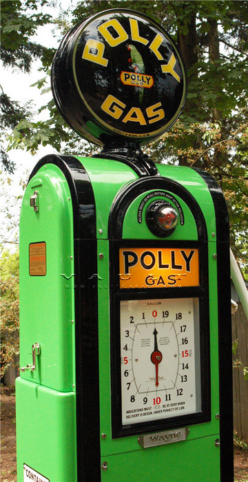 Every detail of this pump was accurately, and faithfully, reproduced to the highest level of quality to preserve its historical distinguishing characteristics, content, and vintage “factory correct” appearance. This is one of the finest gas pumps in existence restored in one of the most desirable, and striking, gasoline brands (Polly Gas). Information about the Wayne Company and this particular model is at the very bottom of this description.