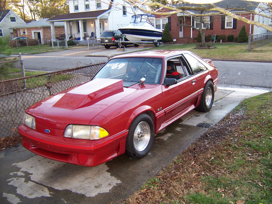'87 Ford Mustang, 408 c.i. stroked Windsor. Jerico 4 speed, Mcloud clutch, 4:30's, 28x10.5 slicks