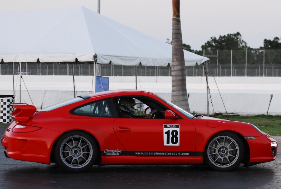 Shane Lewis, just back after taking first in class at the 24 Hours of Nurburgring, and last weekend running in ALMS at Laguna Seca, enforced the rules after doing a couple of hot laps in the ZMG RSR