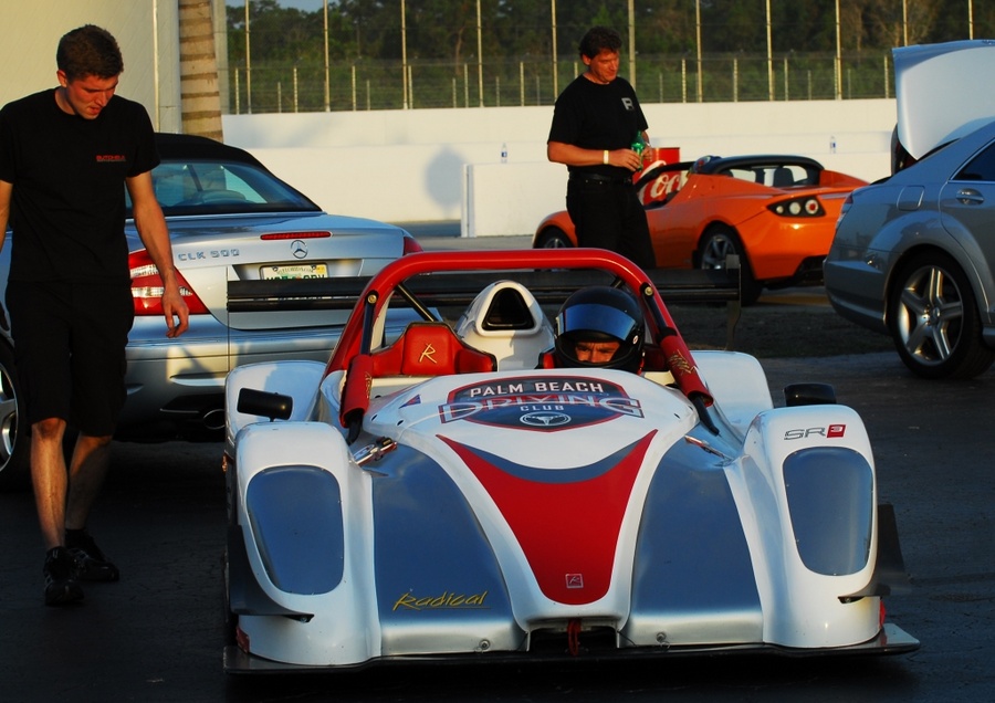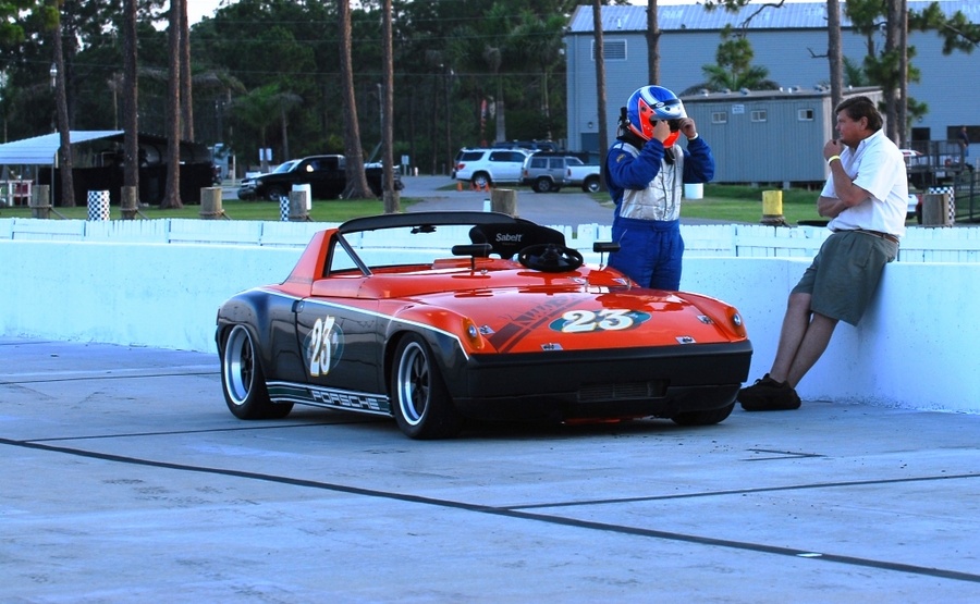 we ran a PBDC Chase race last night under the lights at PBIR - open field - everyone qualifies their own car, then the fastest cars start last with timed handicap. Fellow Spec Miata racer Hanna showed in the 21X Miata (all 100 hp of it) along with Chris Boy of Moto Corse in his turbo, Ronnie Vogel in the Club Radical, Noah Weisberg in his M3, Mike Brennan in his C2S, Justin Bellizoni Champion Motorsports in his custom C2S track monster, Joe Lubeck owner of PBIR in his 360 Stradale, Cody from Klubsport in the 914-6, and me in my GT3....