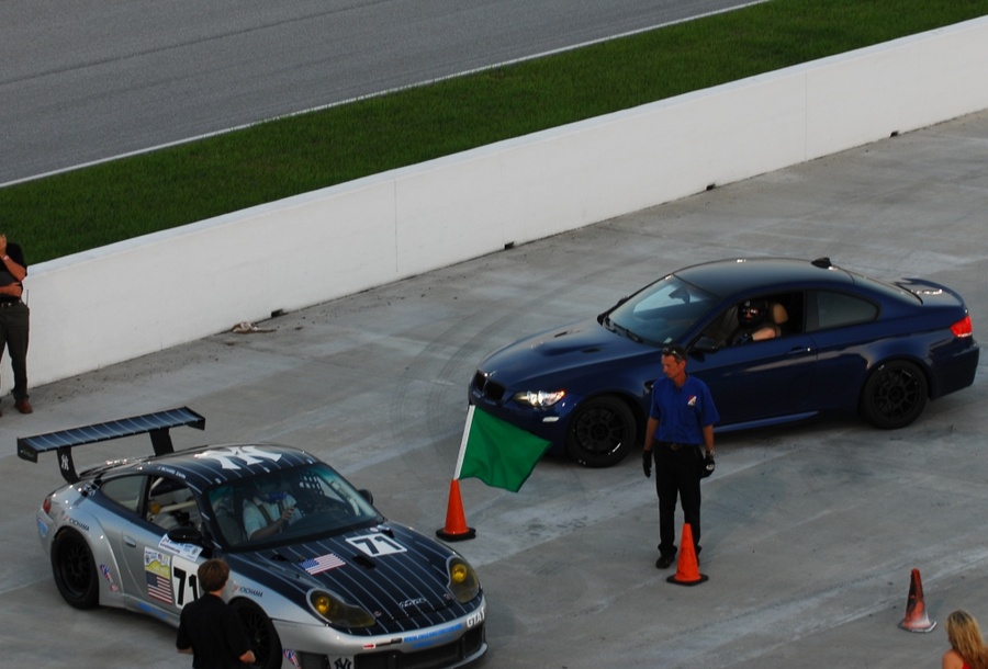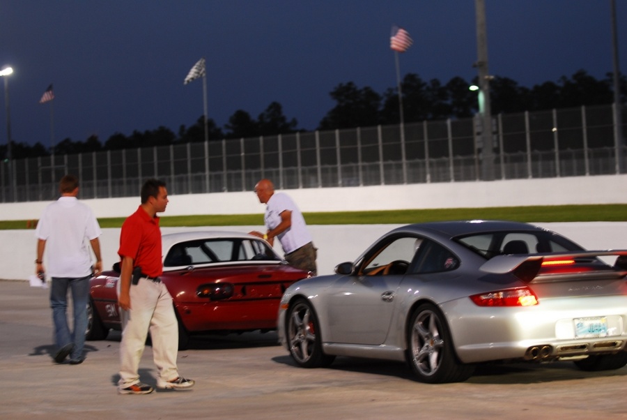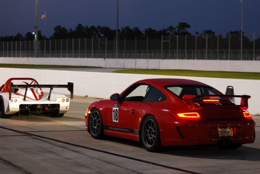 we ran a PBDC Chase race last night under the lights at PBIR - open field - everyone qualifies their own car, then the fastest cars start last with timed handicap. Fellow Spec Miata racer Hanna showed in the 21X Miata (all 100 hp of it) along with Chris Boy of Moto Corse in his turbo, Ronnie Vogel in the Club Radical, Noah Weisberg in his M3, Mike Brennan in his C2S, Justin Bellizoni Champion Motorsports in his custom C2S track monster, Joe Lubeck owner of PBIR in his 360 Stradale, Cody from Klubsport in the 914-6, and me in my GT3....