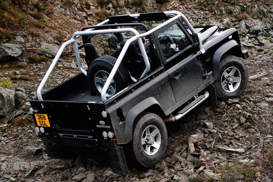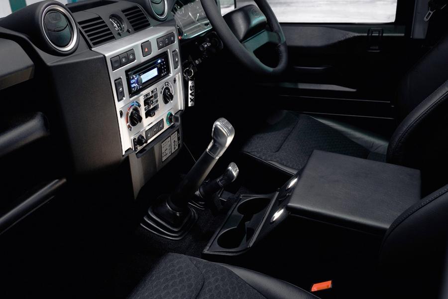 "Companies can crow about the ability of their SUVs, but for a great number of people, the land Rover Defender is the epitome of the SUV concept. As iconic as the original Jeep, the Defender does its thing, and does it better than just about any other vehicle in its class. Wagon or convertible, new or old, the Defender will happily wade into whatever slop its driver points it at and come out the other side no worse for wear. As we reported late last year, Land Rover is building a limited run of 1,800 Defender SVX models to celebrate the marque's 60th anniversary. The SVX kit dresses up the Landie with flashier trim on the grille, side steps and roll cage; a swankier set of wheels; special badging and decals; plus interior appointments including Recaros, a Garmin GPS, and that all-important iPod hookup. Glitzing up a Defender seems akin to a mud wrestler putting on Harry Winston jewelery before heading into battle, but at the end of the day, at least you know it'll clean up nice. "