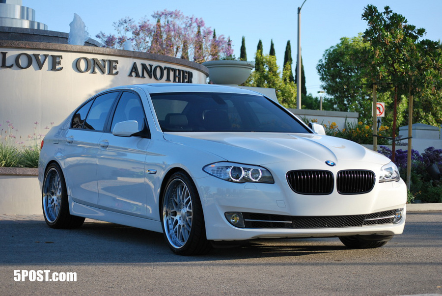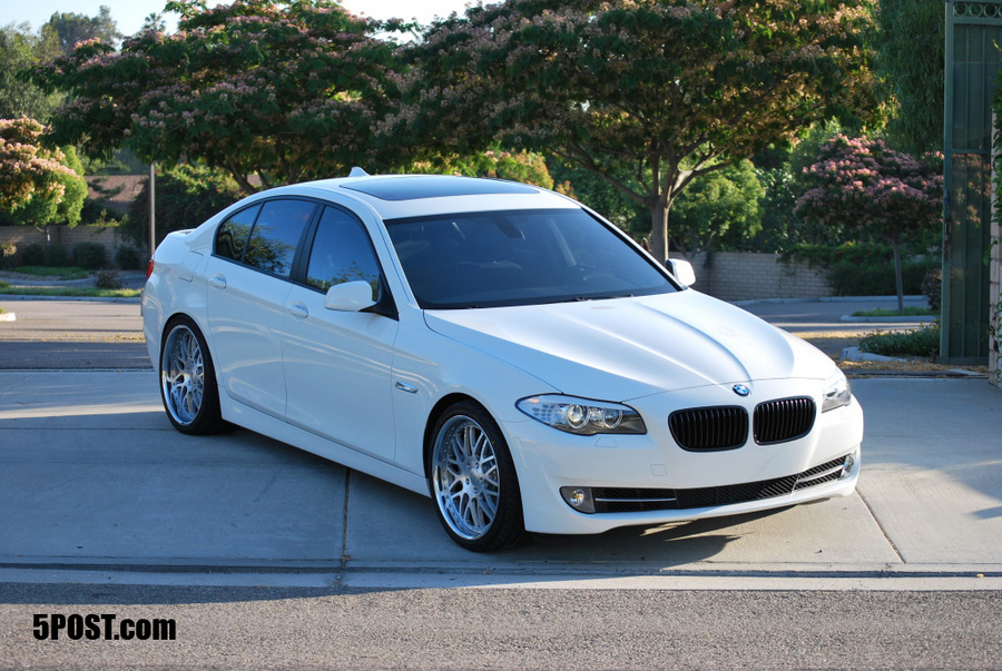 New BMW 535i F10 fit with NUTEK 304 20x9.0 front and 20x10.0 rear. Finished with full brushed centers with gloss powder clear, chrome outer rims and matte black inner rims.