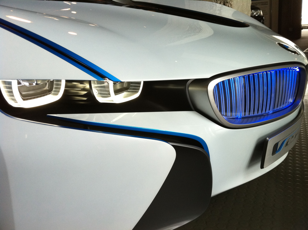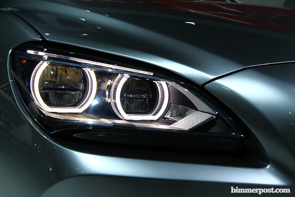 We first began seeing the squared-off angel eye lights on the VED concept car, a design concept which flowed down in less radical form to subsequent concept cars such as the Gran Coupe Concept and the 6-series Coupe Concept (all pictured below). Although the squared-off angel eyes unfortunately did not make production on the 6-series coupe, the F30 spy photo below shows clearly the new shape of the F30's LED angel eyes.