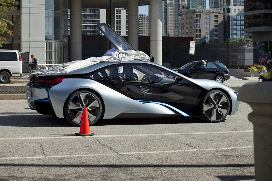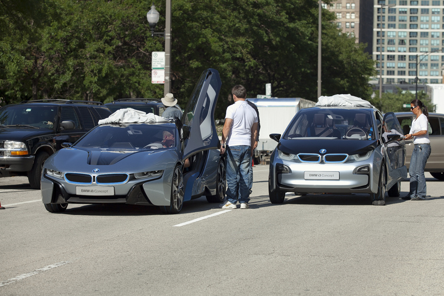 The folks at Cars.com caught BMW's electric duo, the i8 and i3 concept cars, on the streets of Chicago. These are the first real life images on public streets of the pair. BMW's recently revealed EV and hybrid-electric concept cars have caused quite a splash in the automotive world in the past few weeks and it's great to see these out and about for what was most likely a commercial shoot. For all the images head to the blog at Cars.com. Thanks to Bimmerpost for the tip.