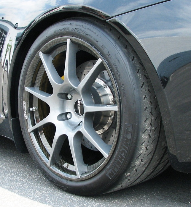 Weds Sports, a Japanese wheel-maker, has created a full carbon fiber wheel -- rims, spokes, hub, everything -- that weighs 2.76 kg. Coming out to about 6.1 pounds, that's about half the weight of the Dymag carbon fiber wheel with a magnesium rim that you'll find on a Callaway Corvette, and just over a pound more than Dymag's all-carbon race-specific front wheel for a motorcycle.
