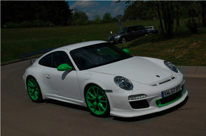 No hurry but any chance you can PS out the flag badge on the side and the RS logo on front pass fender? And maybe the green a TAD darker?