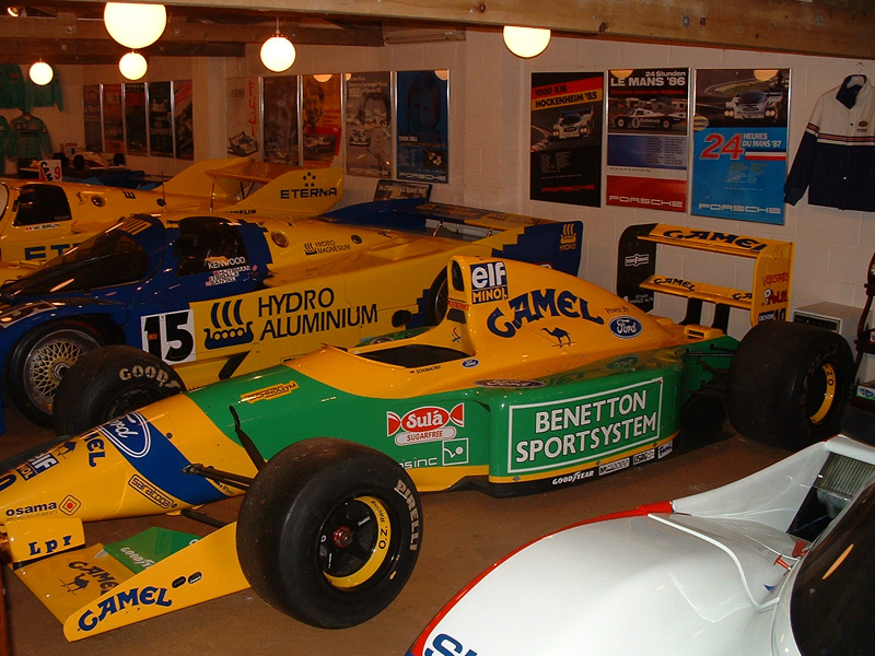 Right I found some other pics I took way back in 2003 when his Group C cars were in another building. The Benneton is ex Michael Shumacher and the Footwork Porsche is ex Michele Alboreto.
